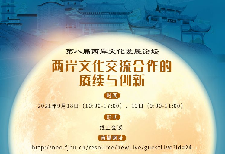 中國臺灣網9月18日福州訊 “第八屆兩岸文化發展論壇”今日在福州開幕,論壇采取線上方式,圍繞“兩岸文化交流合作的賡續與創新”主題展開,并設立“兩岸文學研究”“兩岸教育與藝術”和“兩岸歷史與文化”三個分論壇。來自海峽兩岸近50所科研機構、高等院校的120余名專家學者參加。