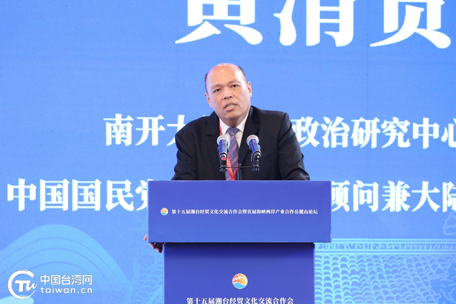 中國臺灣網10月21日長沙訊 (記者 尹賽楠)10月21日,第十五屆湘臺經貿文化交流合作會暨首屆海峽兩岸產業合作岳麓山論壇在湖南省長沙市開幕。南開大學臺灣政治研究中心主任、中國國民黨前主席特別顧問兼大陸事務部主任黃清賢在主旨演講中表示,兩岸同胞同祖同根,血脈相連,文化相通,沒有任何理由不攜手發展、融合發展。
