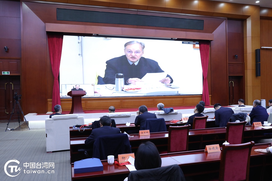臺(tái)灣東吳大學(xué)巨量數(shù)據(jù)管理學(xué)院講座教授朱云鵬以視頻連線方式進(jìn)行發(fā)言。(中國(guó)臺(tái)灣網(wǎng) 尹賽楠 攝)