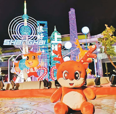 上海旅游節吉祥物“小鹿樂樂”也隨彩燈來到臺北。