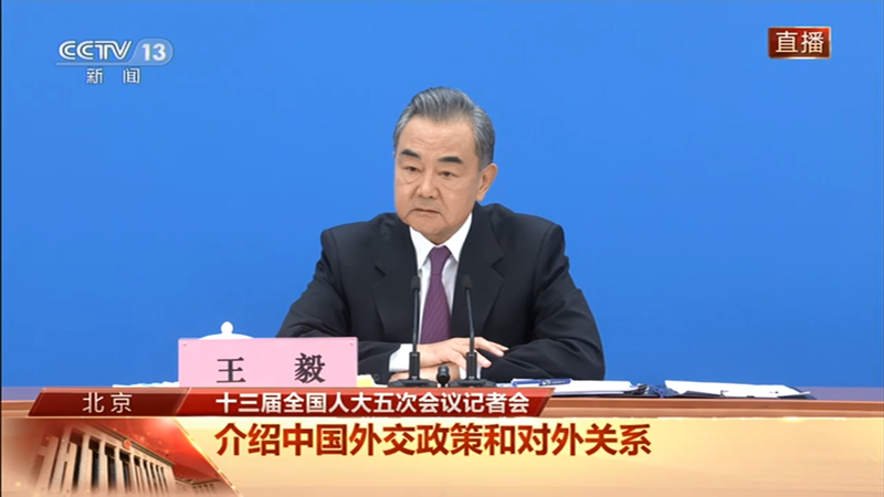 國務(wù)委員兼外交部長王毅答中外記者問。(圖片來源:央視畫面截圖)