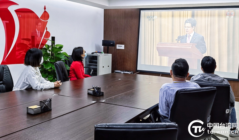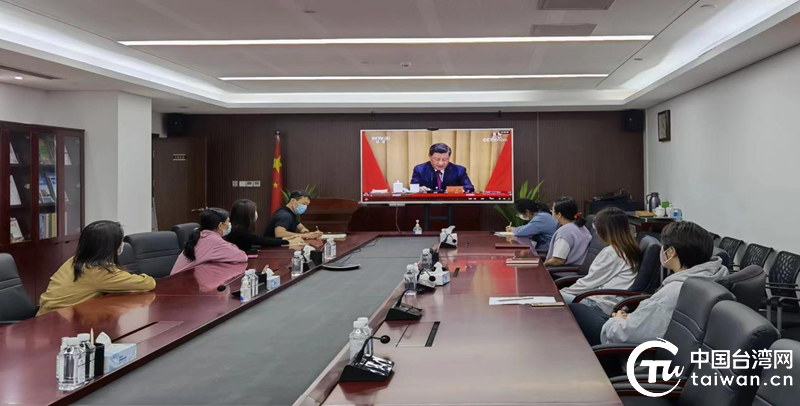 中國臺灣網團支部團員青年收看慶祝中國共產主義青年團成立100周年大會直播。(中國臺灣網 發)
