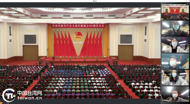交流中心團支部組織收看慶祝中國共產主義青年團成立100周年大會。(中國臺灣網 發)