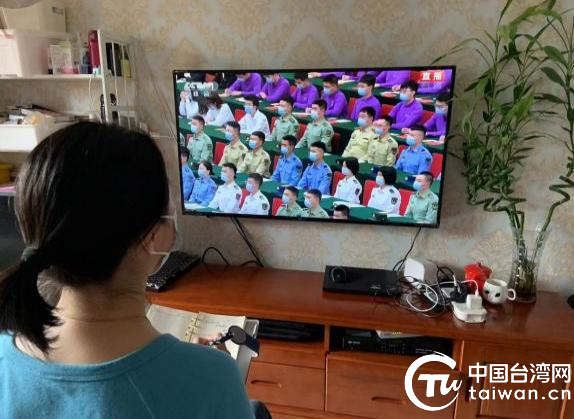 居家辦公的青年干部自行觀看慶祝中國共產主義青年團成立100周年大會。(中國臺灣網 發)