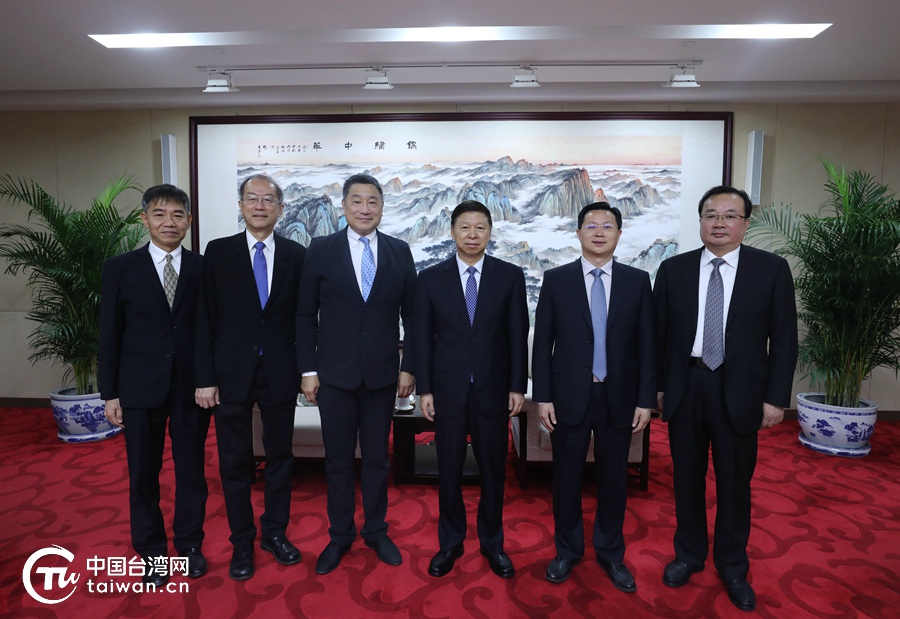 中共中央臺辦、國務院臺辦主任宋濤與臺泥集團董事長張安平一行合影。(中國臺灣網 尹賽楠 攝)