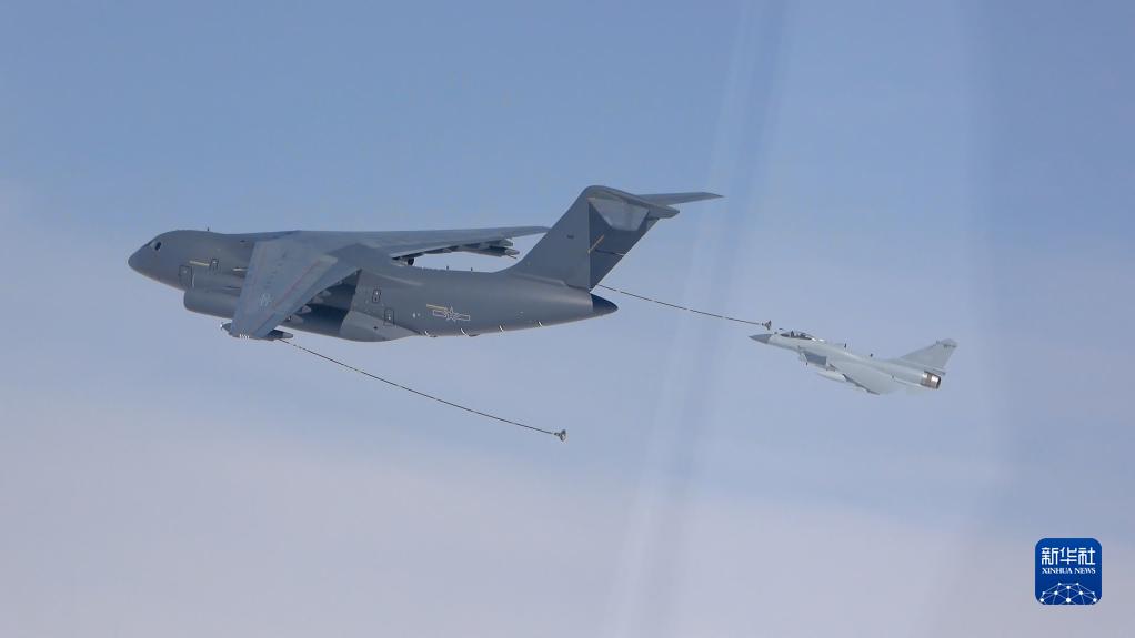 這是戰(zhàn)機在進行空中加油(4月9日攝,視頻截圖)。新華社發(fā)