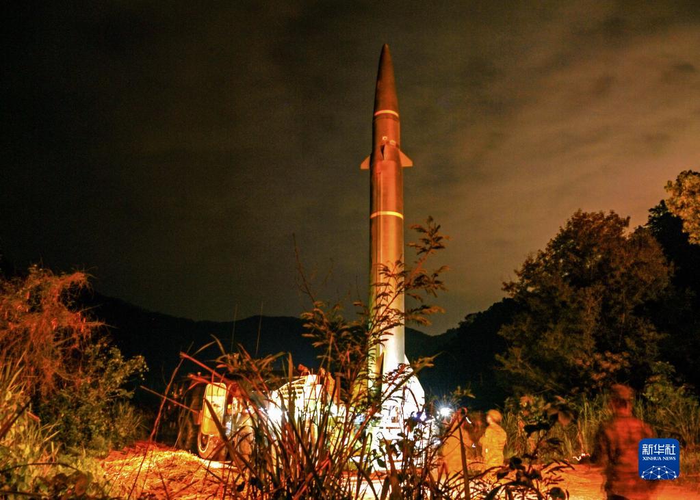 這是參演火箭軍某部在起豎導彈(4月8日攝)。新華社發(fā)(劉明松 攝)