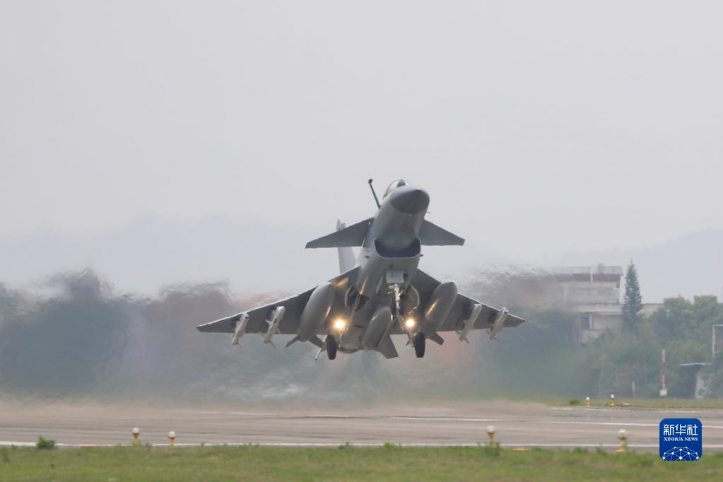 這是殲擊機掛彈起飛(4月8日攝)。新華社發(fā)(王紫簫 攝)