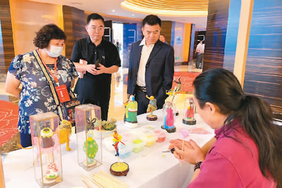 圖為兩岸旅游業(yè)者在觀賞非遺項目廬州面塑。