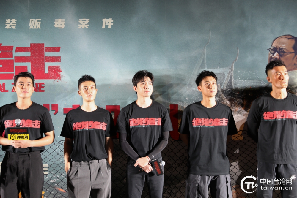 圖為電影《絕地追擊》中飾演8077部隊戰士的主演們。(中國臺灣網 郁誠 攝)