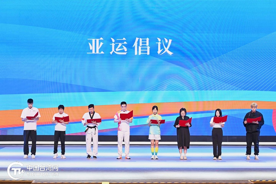 兩岸運動員代表、杭州亞運會臺灣火炬手和志愿者代表、兩岸媒體人代表分別就參與亞運、服務亞運、宣傳亞運分享感言,共同發出倡議。(中國臺灣網 發)