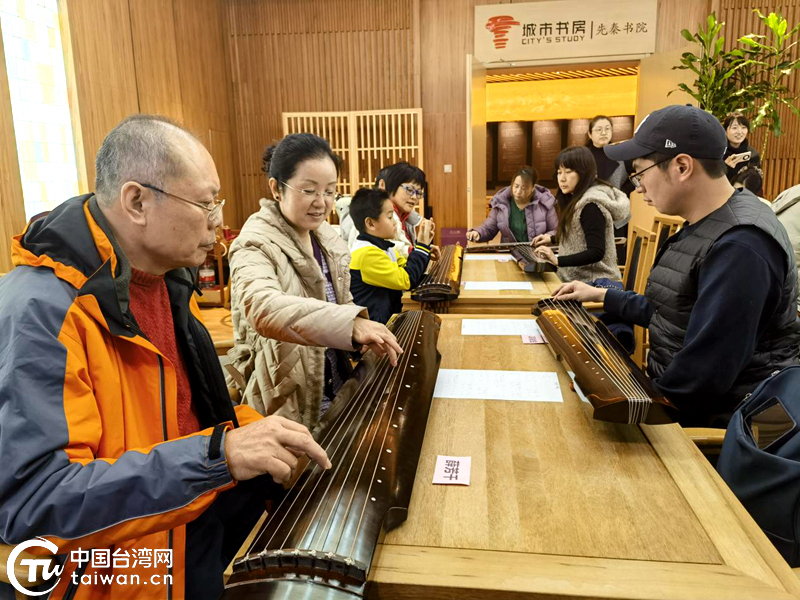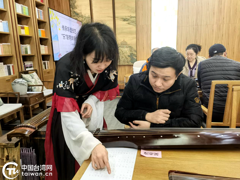 臺胞臺屬現(xiàn)場學習古琴技法。(中國臺灣網發(fā))