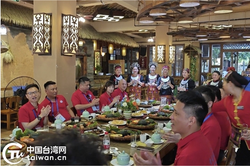 在海峽兩岸交流基地——檳榔谷參觀交流時,臺灣青年們通過品嘗當地特色的長桌宴等活動,親身感受獨特的黎族文化。他們紛紛表示:“兩岸一家親,我們都是中國人,都是龍的傳人,有著相同的心靈歸宿。”