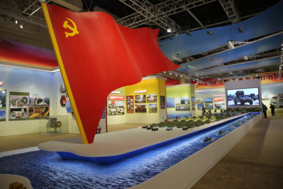 “強軍征程 揚帆遠航”主題模型展臺共有50型151件武器裝備模型,展臺前端是形似船帆的黨旗,整個展臺猶如一艘強軍號巨輪,寓意在黨的領導下,朝著建設世界一流軍隊揚帆遠航;上方平臺猶如三軍列陣、戮力向前的強軍之路,寓意在黨的指引下,改革重塑后的人民軍隊昂首闊步在強軍新征程上;武器裝備按作戰編組排列,寓意我軍時刻以戰斗姿態守護和平安寧,展現召之即來、來之能戰、戰之必勝的精兵勁旅形象。