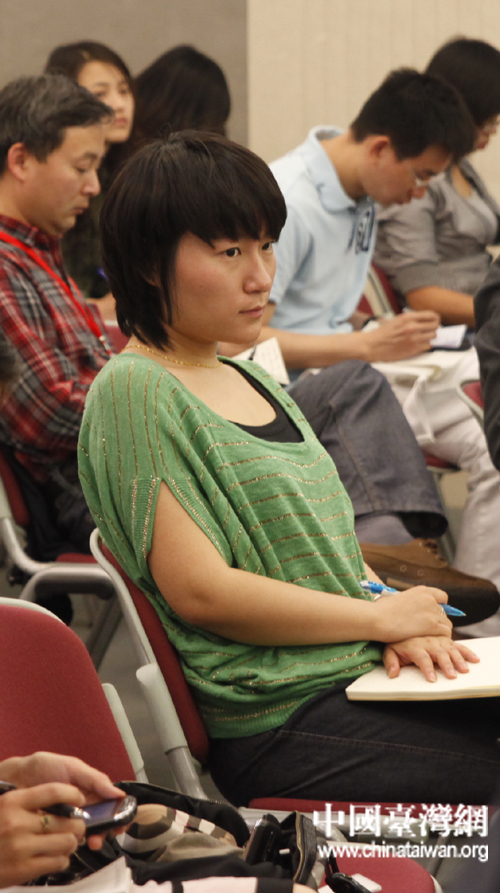 我網記者李徽在國臺辦新聞發布會現場。 (中國臺灣網 陳佳慧 攝)