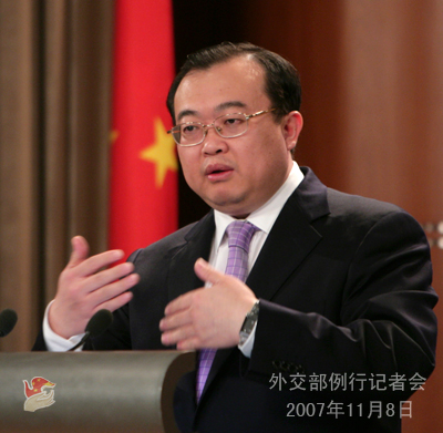 2007年11月8日下午,外交部發(fā)言人劉建超舉行例行記者會,就六方會談、巴基斯坦局勢、阿富汗發(fā)生自殺性炸彈襲擊、伊朗核問題等回答記者提問。
