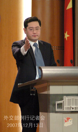 2007年12月13日下午,外交部發(fā)言人秦剛舉行例行記者會,就六方會談、馬其頓國名、蘇丹、中日關(guān)系等問題回答記者提問。