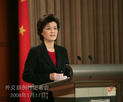 2008年1月17日,外交部發言人姜瑜舉行例行記者會,就英國首相布朗即將訪華、中美戰略對話、中國漁船在北部灣遇襲、挪威外交大臣遭遇恐怖襲擊、伊朗核問題等答記者問。