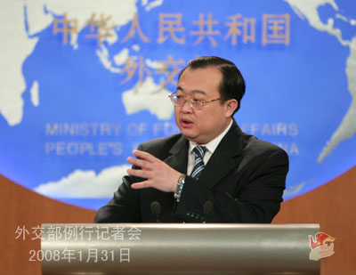 2008年1月31日下午,外交部發言人劉建超舉行例行記者會,就中國南方雪災、中國出口食品安全、朝核、南沙群島、蘇丹達爾富爾等問題回答記者提問。