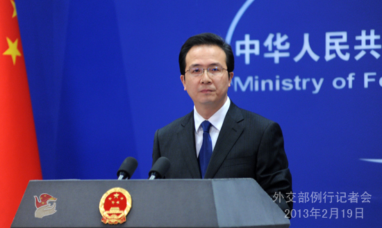 2013年2月19日,外交部發(fā)言人洪磊主持例行記者會。