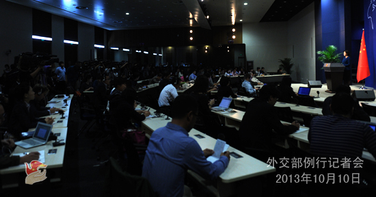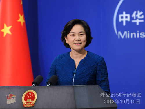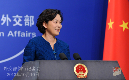 2013年10月10日,外交部發(fā)言人華春瑩主持例行記者會。
