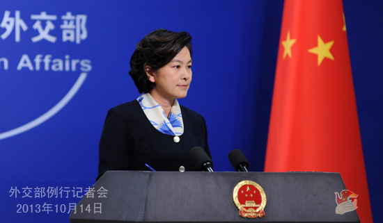 2013年10月14日,外交部發言人華春瑩主持例行記者會。