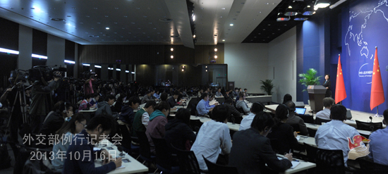 2013年10月16日,外交部發言人華春瑩主持例行記者會。