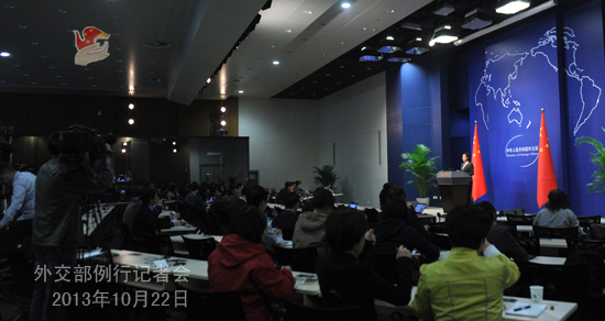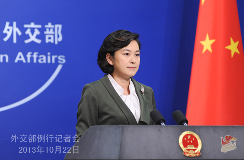2013年10月22日,外交部發(fā)言人華春瑩主持例行記者會(huì)。
