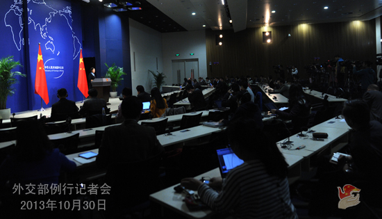 2013年10月30日,外交部發(fā)言人華春瑩主持例行記者會(huì)。