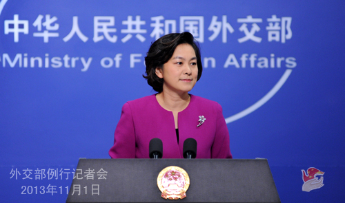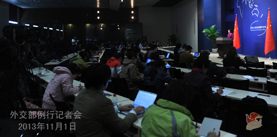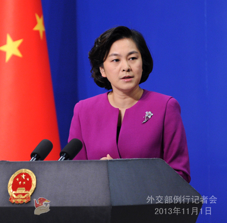 2013年11月1日,外交部發言人華春瑩主持例行記者會。