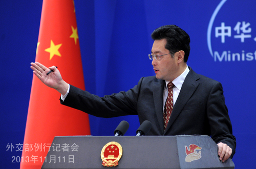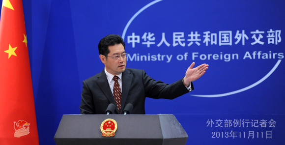 2013年11月11日,外交部發言人秦剛主持例行記者會。