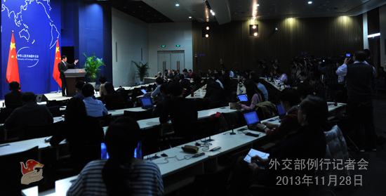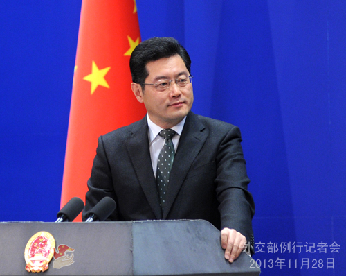 2013年11月28日,外交部發(fā)言人秦剛主持例行記者會。