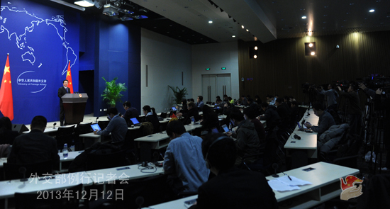 2013年12月12日,外交部發言人洪磊主持例行記者會。