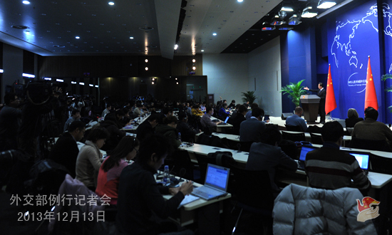 2013年12月13日,外交部發言人洪磊主持例行記者會。