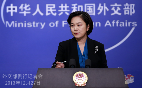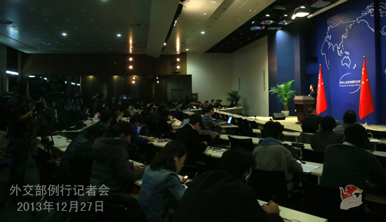 2013年12月27日,外交部發言人華春瑩主持例行記者會。