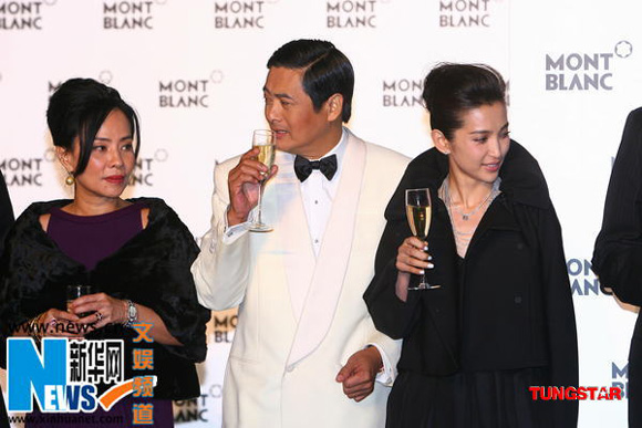 在臺下,昨天周潤發和李連杰幾乎“零交流”。萬寶龍老總在臺上致辭時,周潤發夫婦、李連杰以及李冰冰都在場下等候。周潤發與眾老板相談甚歡后,即轉身與李冰冰交談,不時還手舞足蹈一番。而李連杰一直低調地站在后排,身材不高的他被人群淹沒。只見李連杰時而與身邊的老外簡單攀談幾句,時而低頭看著腳下發呆。兩位巨星在臺下始終沒有交流,連對視都沒有,唯一一次交流只是在臺上寒暄幾句。