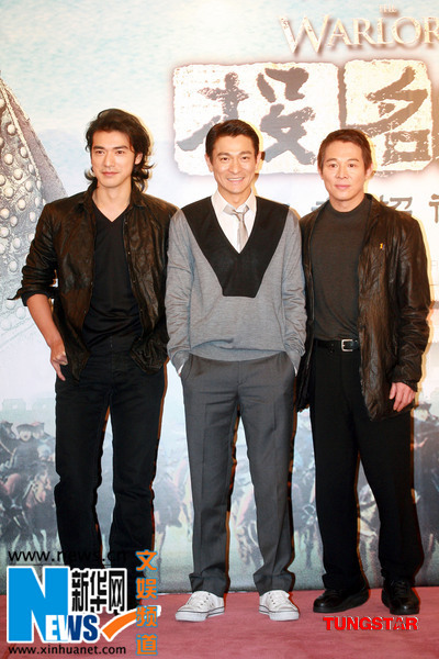 (左起)金城武、劉德華、李連杰出席記者會。