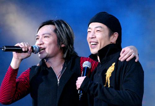 隨后,Beyond雙杰——葉世榮、黃貫中先后登臺演出。對于二人各自的最新作品,觀眾似乎并不是很感興趣,反應比較冷淡。但當Beyond樂隊的成名老歌——《光輝歲月》《海闊天空》《不再猶豫》等等想起時,演唱會瞬時變成了與歌迷的“大合唱”。