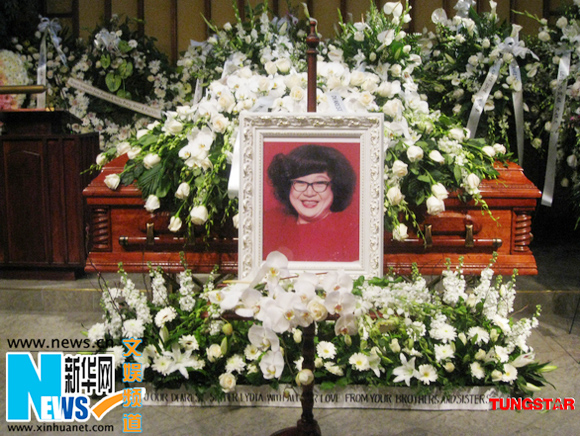沈殿霞靈柩布滿白蘭花和玫瑰