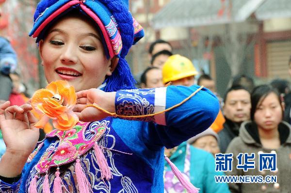 1月31日,在四川省汶川縣映秀鎮,當地群眾載歌載舞喜迎新春。