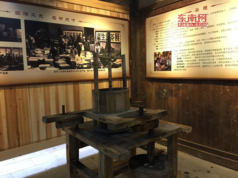 進入坦洋村,可以看到很多古民居建筑。在坦洋村眾多古建筑中,建于清朝同治年間的豐泰隆茶行是坦洋村保留最完整的茶行建筑。如今,這里被打造成了坦洋村的展示館,里面陳列的一幅幅老照片向人們講述著坦洋工夫茶過去的輝煌。