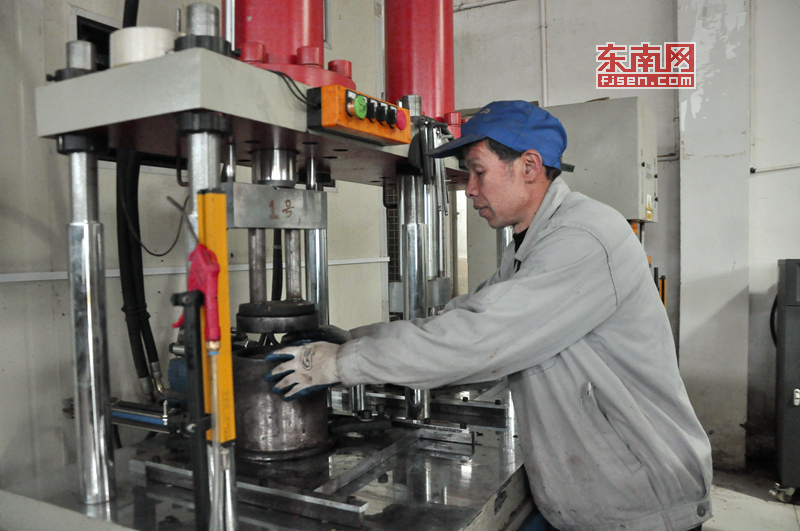 圖為御茶園內(nèi)制茶師傅正在壓制白茶餅。