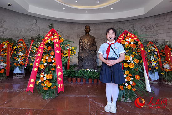 圖為銅仁市逸群小學學生為參觀者講解周逸群烈士事跡。人民網(wǎng)記者 黃玉琦攝
