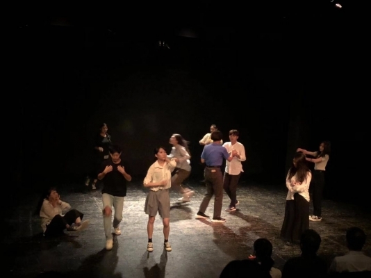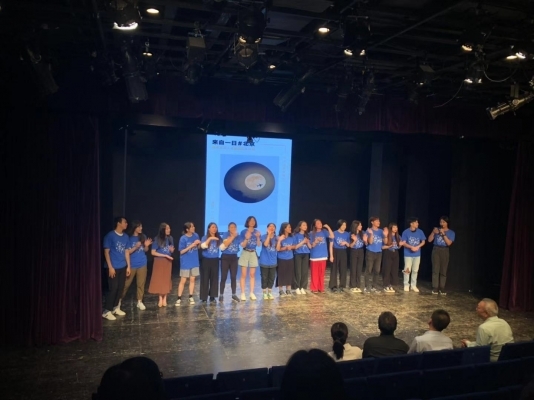 結業(yè)分享會以“來自一日#北京”為主題,分別結合戲劇、舞蹈音樂及短視頻多領域的表演,呈現(xiàn)20名學生在北京一個月以來的實習成果及匯報,也涵蓋“戲劇”的藝術感悟和“京城”生活的雜感,各個環(huán)節(jié)均由20名臺灣學生精心設計,大家各盡其才,通過游戲與對談的方式,對比兩岸在藝術、工作領域的異同。學生逐個分享實習心得、生活趣聞,呈現(xiàn)了一場極具特色的分享會。