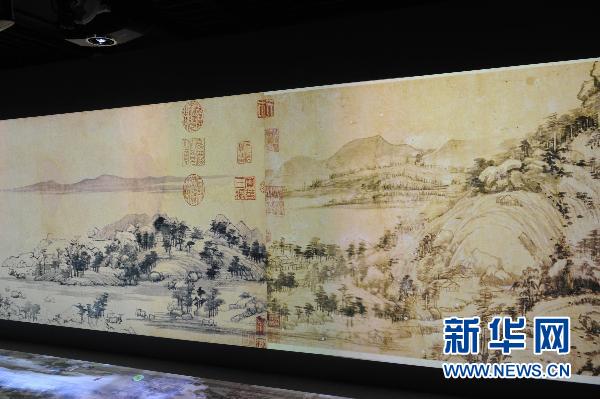 6月1日,觀眾在參觀通過多媒體技術“合璧”后的《富春山居圖》。當日,“山水合璧——黃公望與《富春山居圖》特展”開幕式在臺北故宮博物院舉行。分藏海峽兩岸的《富春山居圖》系元代著名畫家黃公望所作,清初被焚為兩斷,分別稱為《剩山圖》和《無用師卷》。這件書畫珍品360年后首次“合璧”展出成為兩岸關注熱點。新華社記者李明放攝