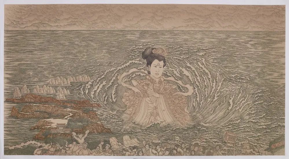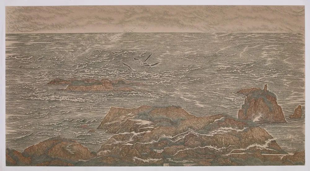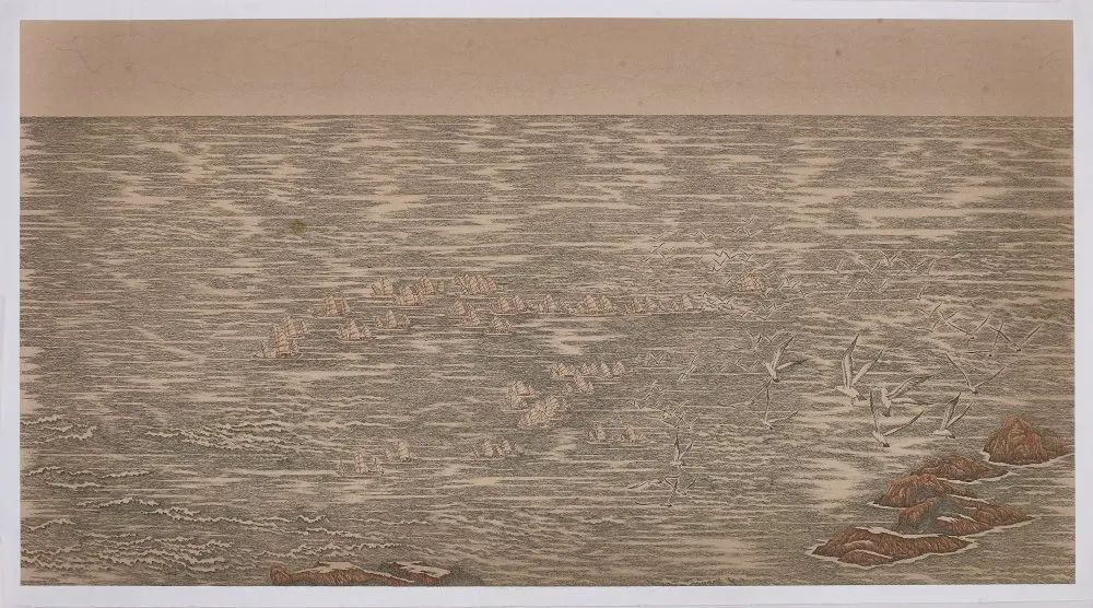 巧的是,浙江洞頭與臺灣一水相連,地緣相近、人緣相親、語言相通、文緣相承,此次,以侯傳芳、金國斌、吳聘真、葉向榮、呂相國等藝術家組成的創作團隊,繼完成《八百里甌江圖》之后,于2020年啟始,歷時一年半余,用獨特的鋼筆畫技法,以甌江入海口的半屏山為開篇,順江入海,延綿海峽,直至高雄半屏山,創作了《兩岸半屏山》山海長卷,展現了兩岸半屏山山水相連、人文相通的歷史淵源。《兩岸半屏山》長卷由12幅高1米、長2米的畫卷組成,總長24米。