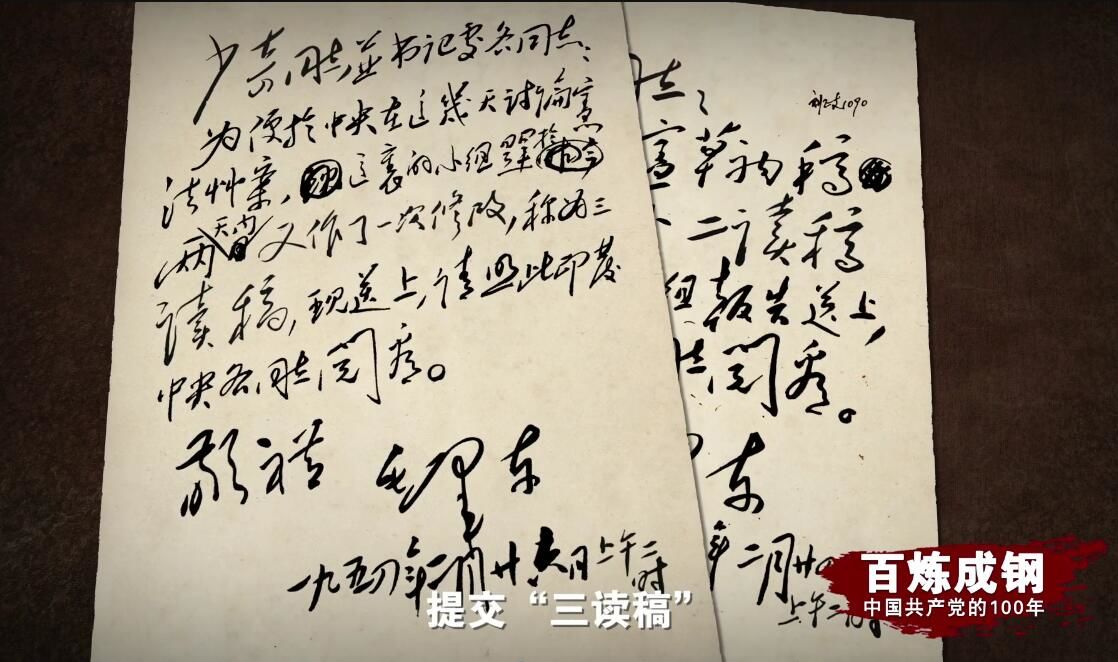 1954年2月24日,毛澤東致信在北京主持工作的劉少奇,提交“二讀稿”。兩天后,提交“三讀稿”。落款處的時(shí)間,都是“上午二時(shí)”。