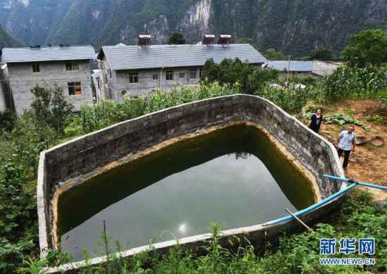 毛相林(前)經過下莊村用于農業生產的水池(2020年7月3日攝)。新華社記者 王全超 攝