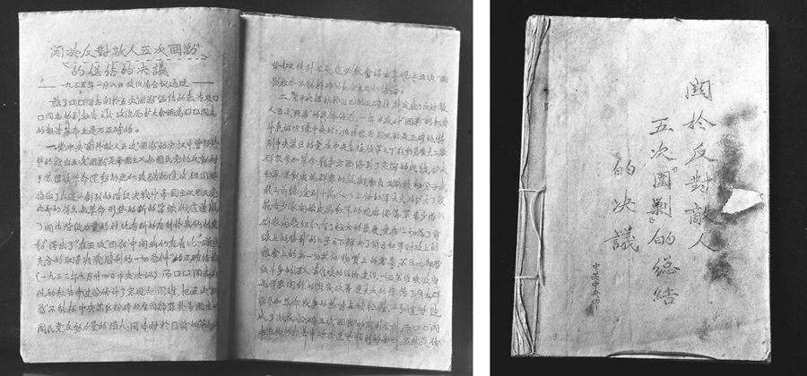 遵義會議會址陳列的關于反對敵人五次“圍剿”的總結的決議復制品。 新華社圖片