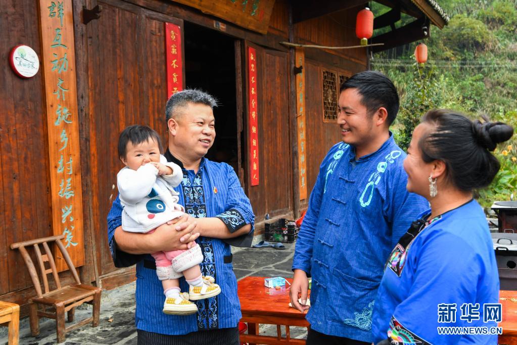 扶貧隊(duì)隊(duì)長龍秀林回到十八洞村看望龍先蘭一家,手中抱著龍先蘭的女兒龍思恩(2020年10月27日攝)。新華社記者 陳思汗 攝